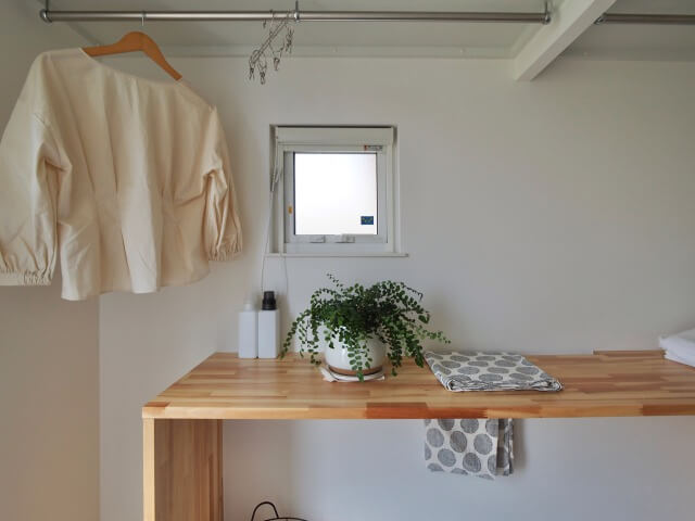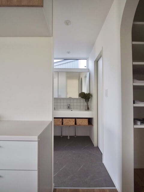 「脱衣所」「洗面所」「ランドリールーム」の空間を分けそれぞれが気兼ねなく使用できる間取りに。
