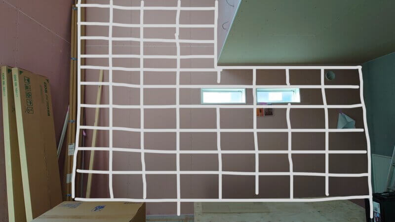 吹き抜け部分は2階の天井まで張り上げます