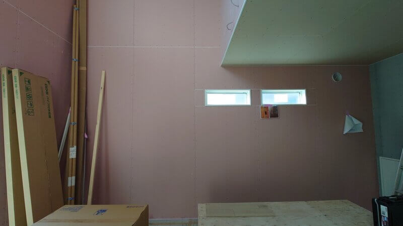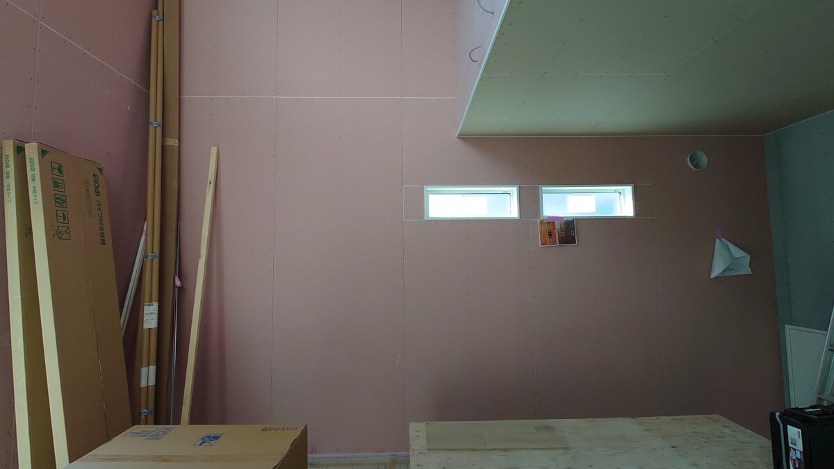 吹き抜け部分は2階の天井まで張り上げます