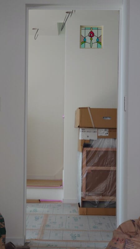 玄関タイルを施工中だったので