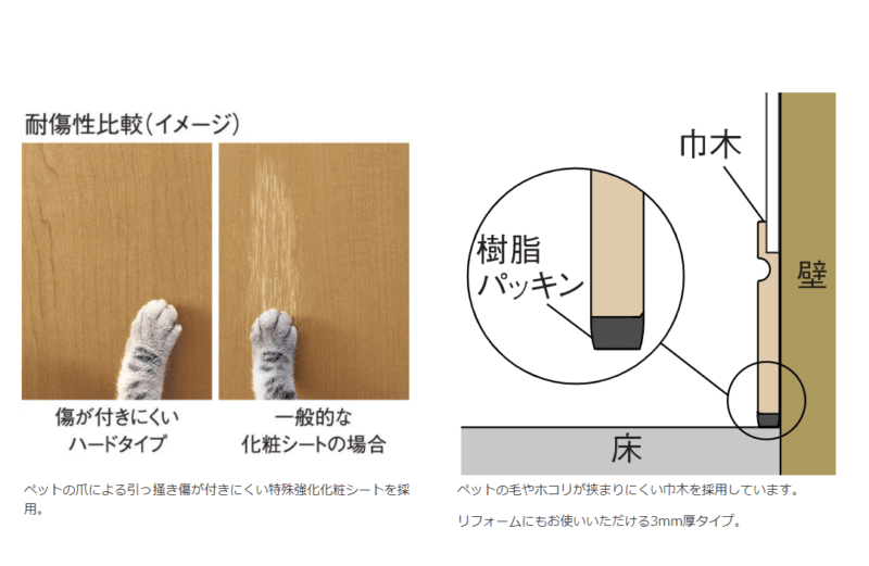 LDKの壁には傷に強い素材を使用しました!