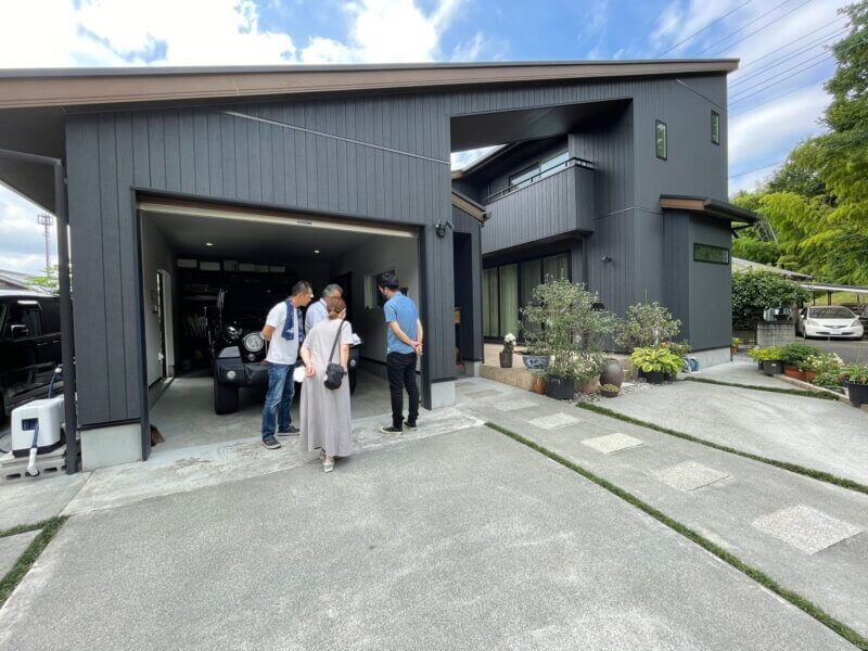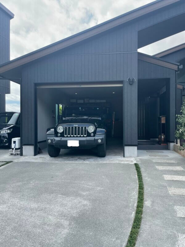 藤枝支店の中山です。打合せ中のお客様I様と築7年目のオーナー様のお家に行ってきました!場所は富士宮市杉田目の前には茶畑が広がるのどかな場所です。その中でひときわ目を引く2つの建物を見学させていただきました。※引き渡し前の写真ですI様のご要望は【ガレージのある家】『それなら私が担当した建物で、見せていただける物件があるよ!』というベテラン営業 小森の提案からお施主様のご厚意で今回の見学に至りました。着いて早速。実際にガレージに車を入れさせてくださいました。最高に似合う…!Jeepを入れてもなお、ゆとりがあって中で洗車もできちゃうサイズ感。I様は憧れのガレージに笑みがこぼれます☺(これはガレージ欲しくなる…)車好きの方なら一度は憧れるガレージ。憧れが実現できる住まい・暮らしをこれからご提案していきます💪次回は中の様子をご紹介します。中山LivingD第一建設は創業50周年を迎えました。まずは気軽な資料請求>ふらっと来場も可能藤枝支店モデルハウス見学>フリープランHIBIKI PREMIUMって?