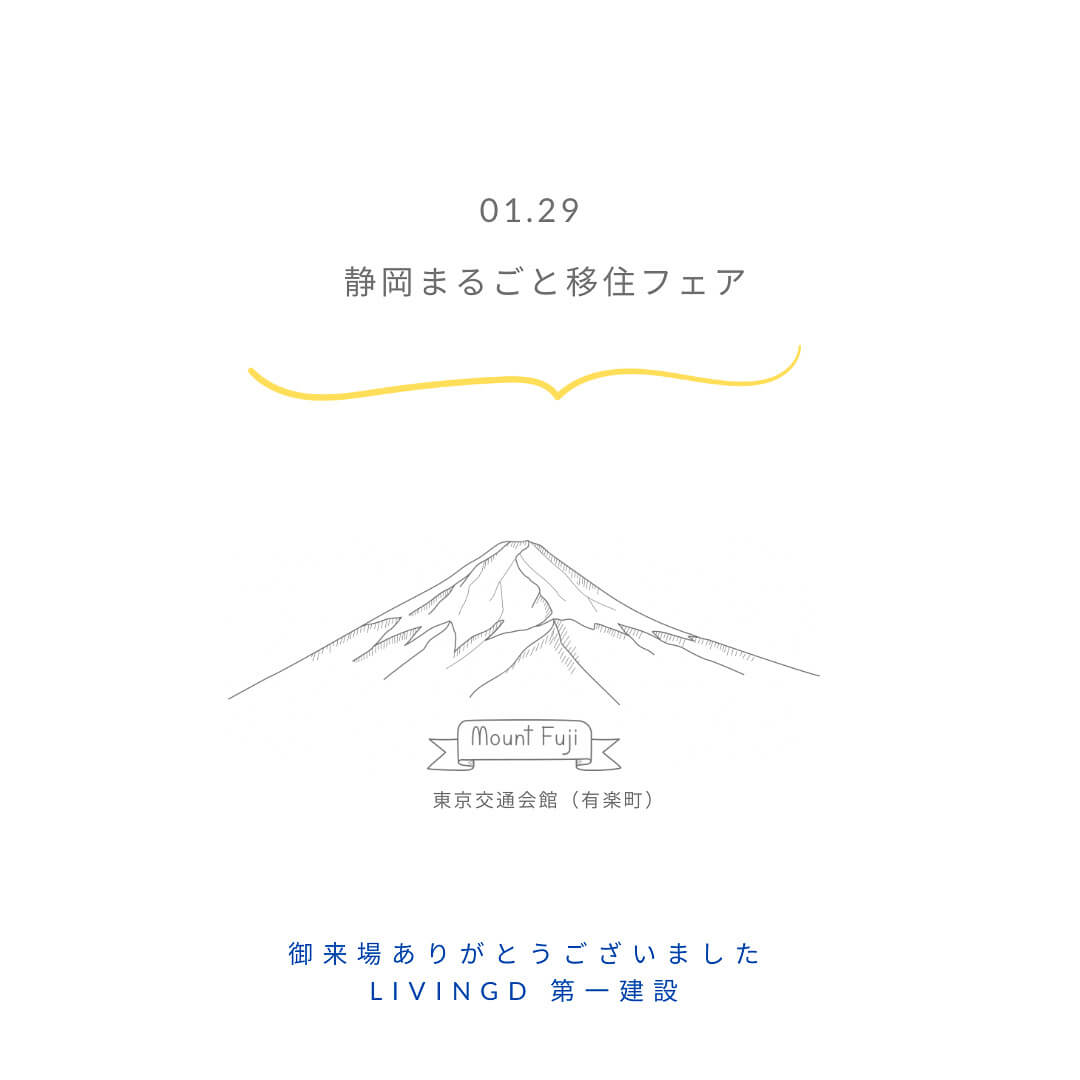 1/29(日)東京交通会館(有楽町)にて「静岡まるごと移住フェア」が開催されました。会場へ足をお運びいただいた皆様関心をお寄せいただいた皆様ありがとうございました。開場時間前から、受付には長い列、「静岡移住」への注目の高さがうかがえます。過去最高だった前回を、さらに大きく上回る御来場者数となり<来場者数>248組405人<セミナー参加者数>75組114人<お茶体験講座参加者数>22人私も住まいや暮らし方について終了時間ぎりぎりまで、多くのご相談を対応させていただきました。静岡暮らしを検討するご相談者様の、思い描く暮らしをかなえるために、少しでもお役に立てれば幸いです。まずはLINEでお気軽にご相談をどうぞLivingD第一建設 本社企画広報室 移住担当;小櫛香穂気軽にLINEトーク相談>>富士山周辺の移住サポートブログ>>LivingD 第一建設株式会社静岡で地域密着50年。「新しいミライのカタチを創造しよう!」五感に響く美しさ、住み心地の良さを大切に、未来の社会を見据えた高付加価値の住まいとサービスを創造提供。持続循環するロングライフデザインのサステナブル企業としてお客様の幸せと快適な暮らしをご提案いたします。街案内から、土地探し、新築、リノベ、賃貸物件、各種補助金まで弊社スタッフが対応させていただきます。担当者から一言「皆様の想い描く新しい暮らしは、どのような暮らしでしょうか?」漠然としたご相談でも大丈夫。丁寧にヒアリングを行い、次へのステップをご提案いたします。まずはお気軽にご希望をお聞かせください。 企画広報室 担当;小櫛香穂LINEでカタログ資料請求>>WEBカタログ資料請求>>