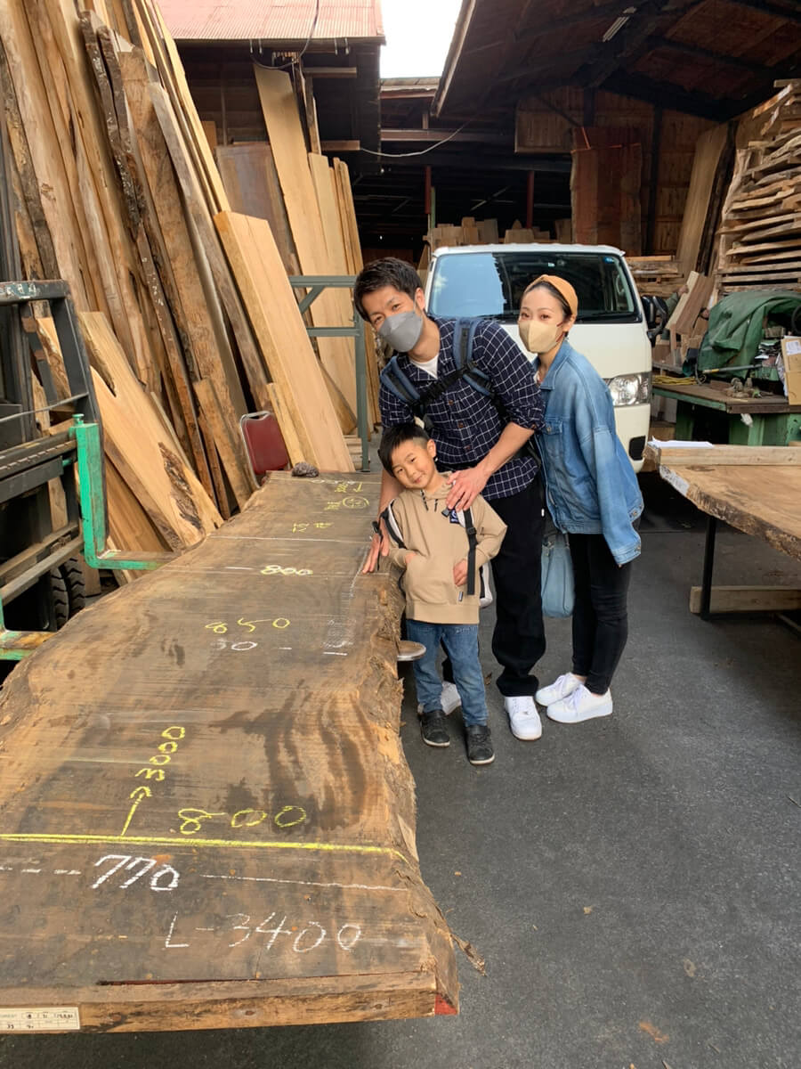 こんにちは🌞スタッフ奥永です😸先日、お客様と一緒に谷田木材さまへ一枚板の見学に行ってきました✨🌲360°どこを見渡しても木であふれていました🌲 今回のお目当てはなんと…!“ 全長3m の一枚板!! ”LDKの中心にどんっっとしつらえる予定です✨✨樹種は“ モンキーポット ”木目を感じられ淡い色のモンキーポットは人気の樹種です。家族みんなで見学。真剣にお話を聞けました👂見学途中には谷田木材を一緒に探検🗡一緒になってはしゃいでしまいました☺☺▽最終決定した一枚板はこちら▽家族写真をパシャリッ📸3mのモンキーポット木の動きが感じられる一枚板を選びました。帰り際、なんと端材などを頂き大喜びです♪頂いた木で何をしようか悩んでいました☺かわいい笑顔も一枚📸お家づくりの思い出がまたひとつ増えました🏡お客様も私も3mの一枚板が現場にしつらえる日が今から楽しみです☺☺▽ 4月の見学会・イベント ▽【ブラックウォールナットが生み出す大人の贅沢空間。グレーの塗り壁で仕上げた42坪の家】4/15㈯・16㈰ 富士市大淵 完全予約制《ブラックウォールナットが生み出す大人の贅沢空間。 グレーの塗り壁で仕上げた42.25坪の家》トリプルガラス樹脂サッシ/HEAT20G2/UA値0.46/断熱等性能等級6/長期優良住宅 | LivingD第一建設の見学会・イベント (livingd.jp)□ 4/15㈯・16㈰□ 10時~16時□ 完全予約制見学会□ 富士市大渕【人気の2WAY玄関と繋がりあるデザイン階段のあるお家】4/22㈯・23㈰ 富士市厚原 完全予約制《人気の“ 2WAY玄関”と繋がり生まれる“ デザイン階段 ”のあるお家》トリプルガラス樹脂サッシ/HEAT20G2/UA値0.41/断熱等性能等級6/長期優良住宅 | LivingD第一建設の見学会・イベント (livingd.jp)□ 4/22㈯・23㈰□ 10時~16時□ 完全予約制見学会□ 富士市厚原【master walのオリジナル手鏡・オリジナルイス作りに挑戦!!】3/25㈯ 富士市森島『ワークショップ;master wal のオリジナル手鏡・オリジナルイス作りに挑戦!』 | LivingD第一建設の見学会・イベント (livingd.jp)□ 3/25㈯□ 10時~15時□ 富士市森島540付近□ モデルハウス見学できます!!