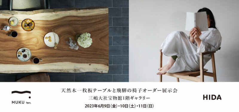本日 初日を迎えました朝方降り続いた雨もあがり、 三嶋大社は 清々しい空気に包まれました。イベント会場「三嶋大社 宝物館」ギャラリー 明日、明後日も開催いたします。ぜひお立ち寄りください。広報室 小櫛6月9(金)10(土)11(日) 三嶋大社宝物館1階ギャラリー「一枚板と飛騨の椅子オーダー展示会」