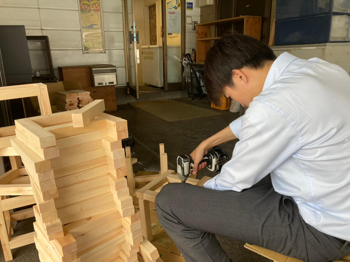 先日、夏のイベントワークショップで作るイスの土台を作りました🪚