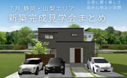 7月に静岡・山梨エリアで開催する「新築完成見学会」情報をまとめてお届けいたします。高い性能による住み心地とデザインを両立させた木の家暑さ寒さに左右されない住み心地の良さ、ぜひ会場でご体感ください。<終了>7/1(土)2(日) HIBIKI の家「生活動線から考える”片付く”お家」OPENHOUSE完成見学会📍静岡県富士宮市山本466付近堀上天井と大きな窓でつくる開放的な22帖のLDKを中心に、生活動線を考えた暮らし心地を叶えました。主役となるフルフラットキッチンや、高級感のある石目柄の造作洗面はグレーでコーディネートされ高級感のある空間へ。1年中どこにいても心地よく。ロングライフ性能の快適な暮らし。———…