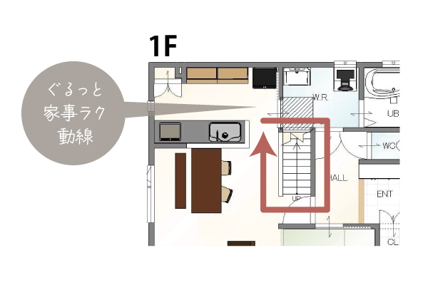 1つ目は【ぐるっと回遊できる1階動線】です。