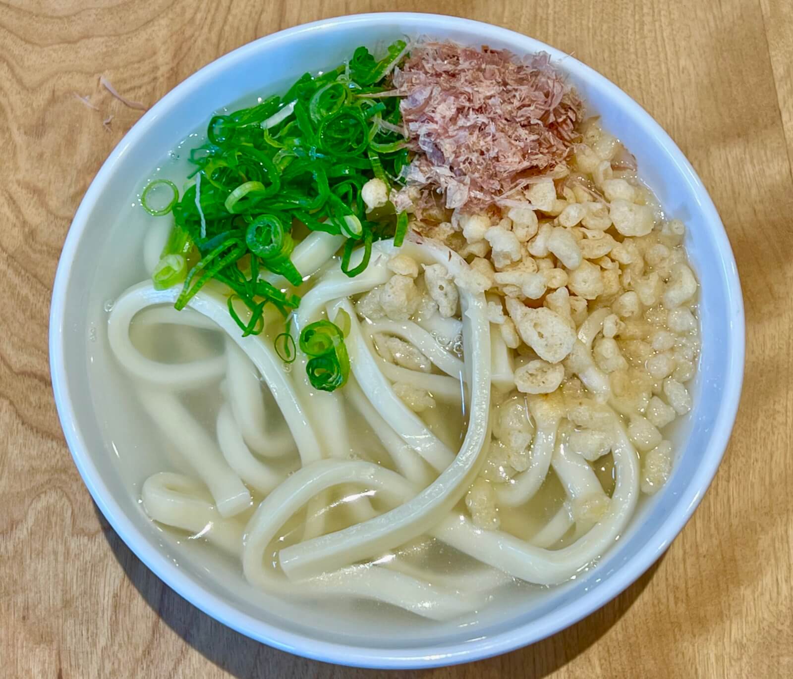 麺にうどんの茹で汁と鰹節