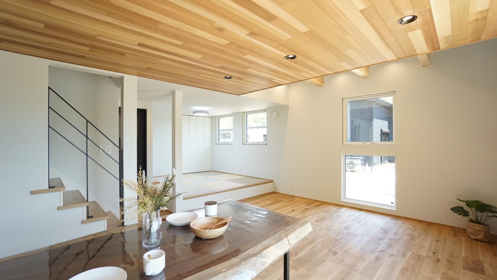 リビングとつながる多目的な小上がりスペースがある38坪の家