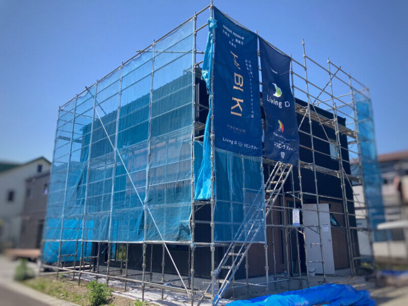 現在、御殿場市で着工中のお家“高性能規格住宅 KIBACO 01_E3”家事ラク動線に4LDK+1ルームで部屋数充実KIBACO の人気No.1プランです* 現場に行ってみると外観が完成し内装の工事に入っていました* 足場で見えにくいですが、ブラックカラーのガルバリウム鋼板にミディアムブラウンのキャスティングウッドでかっこいい仕上がりに* 天気が良く、トリプルガラスの窓が外の景色を反射していました*・・・トリプルガラス樹脂サッシ窓には“断熱性能・遮音性能”が高いという特徴があります。 その他にもトリプルガラスには3枚の窓ガラスの間に2枚の金属膜が入っているので日の光を反射して“外から家の中が見えにくい”という特徴があります* 詳しくはこちら▽『トリプルガラス樹脂サッシ窓』の特徴 リビングディーは全棟トリプルガラス樹脂サッシ窓なのでぜひ現在開催中の見学会やモデルハウスでご覧ください♪・・・こちらのお家は6月から見学会を開催するのでお楽しみに* -∵-∴-∵-∴-∵-∴-∵-∴-∵-∴-∵-∴-∵-∴-∵- 現在、三島市にて同プラン“高性能規格住宅 KIBACO 01_E3”の見学会を開催しております*期間は “5/3(祝金)~5/12(日)” 見学会にご興味がある方は、下記画像をタップで詳細をご覧いただけます▽ 皆様のご予約お待ちしております*