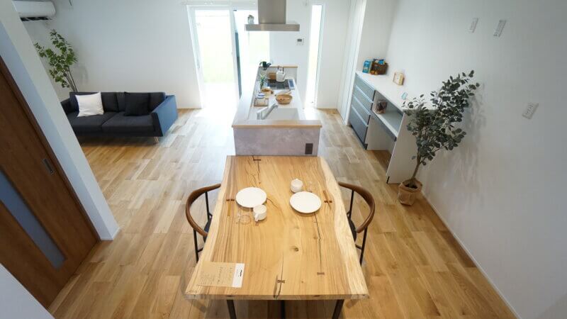 1階LDKに14畳のエアコン、2階主寝室に6畳のエアコンの2台を稼働し、