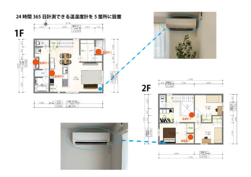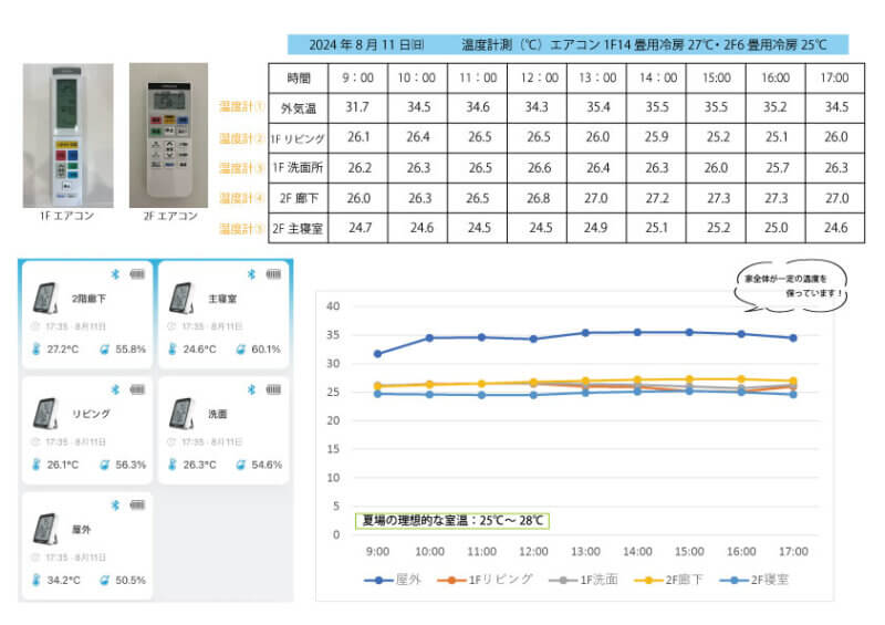 (エアコン設定1階冷房27℃・2階冷房25℃)