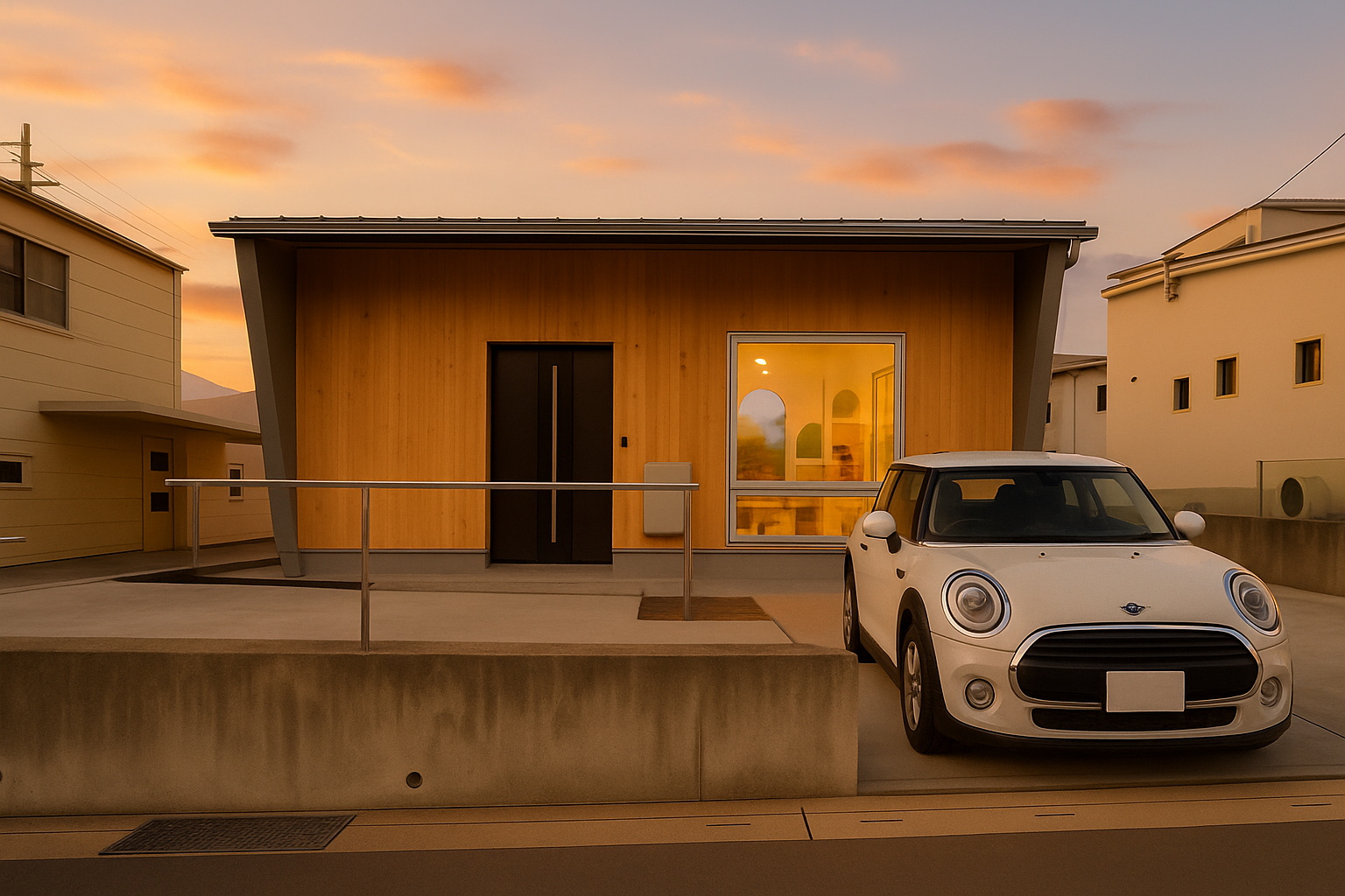 日が暮れはじめる頃のモデルハウスは、