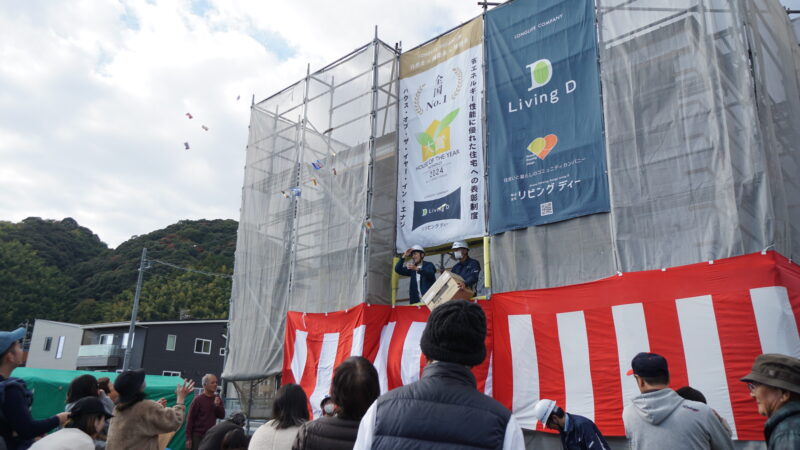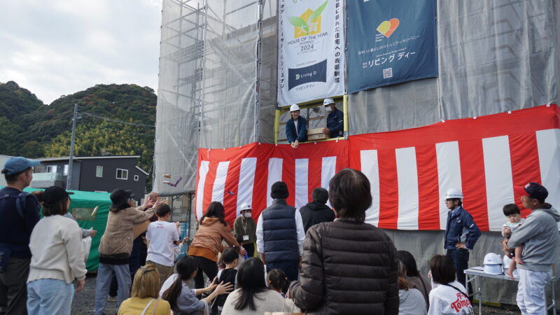 藤枝支店の中山です。今日は島田市阿知ヶ谷でお餅&お菓子まきを行いました。ご近所の方に沢山きていただき楽しいイベントになりました。お越しくださった皆様、ありがとうございました。お餅まきの後は、構造を見ていただきました。 HEAT20G2グレードの断熱の仕様やトリプルガラス樹脂窓を体感いただきました。新築の現場ではなかなか見ることができない断熱材も構造の現場ではどのように施工されているか見ることができます。リビングディーで採用している断熱材は【ネオマフォーム】断熱材の中でもトップクラスの性能をもつだけでなく、年十年経ってもその性能がほぼ変わらない、経年劣化しにくいのも特徴です。そんな断熱材を使用したお住まいが、今月末11/29(土)30(日)の二日間、藤枝市青葉町でご見学いただけます。ぜひ完成したの建物でもご体感くださいませ。見学会詳細はこちら>