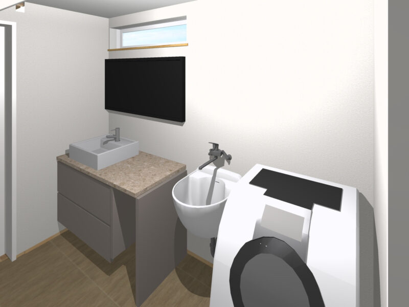 <3帖の広々洗面脱衣には、スロップシンクを設けました>