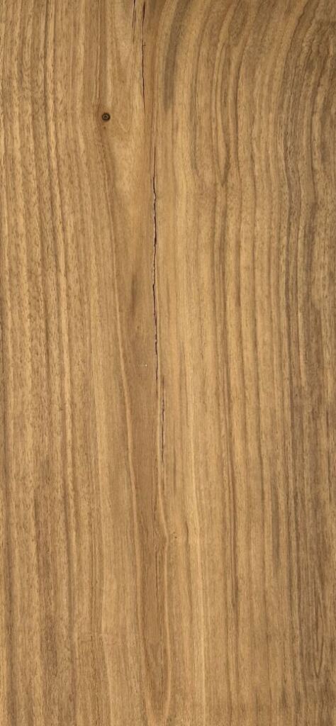 木目は比較的素直で整いながらも、ところどころに木が生きてきた証ともいえる節や表情の変化が現れており、均一ではない自然素材ならではの奥行きを感じさせます。中央付近に見られる縦に流れる木目は、天板として使用した際に空間に広がりと安定感をもたらしてくれるポイントです。