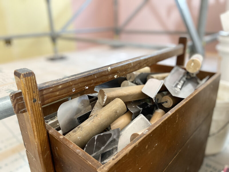 吹き抜けには作業に向け足場も組まれ準備万端。
