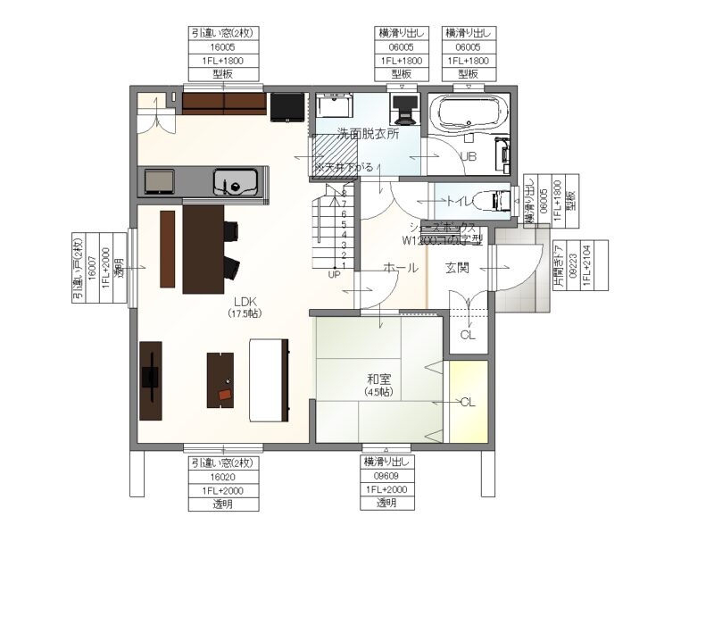 家事動線を考え、キッチンと洗面脱衣所を隣に配置。