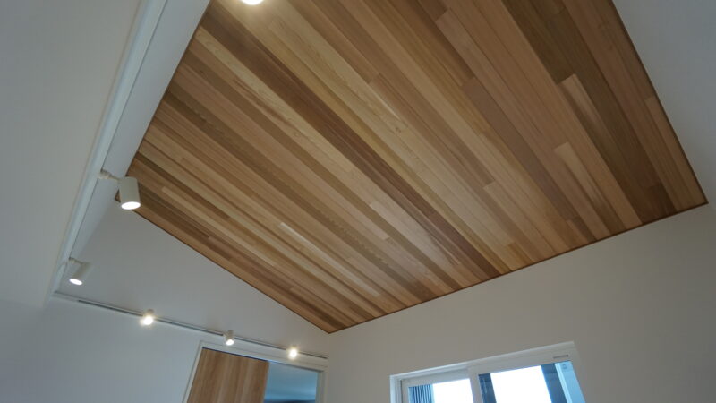 美しい木目のレッドシダーが空間のアクセントとなり、