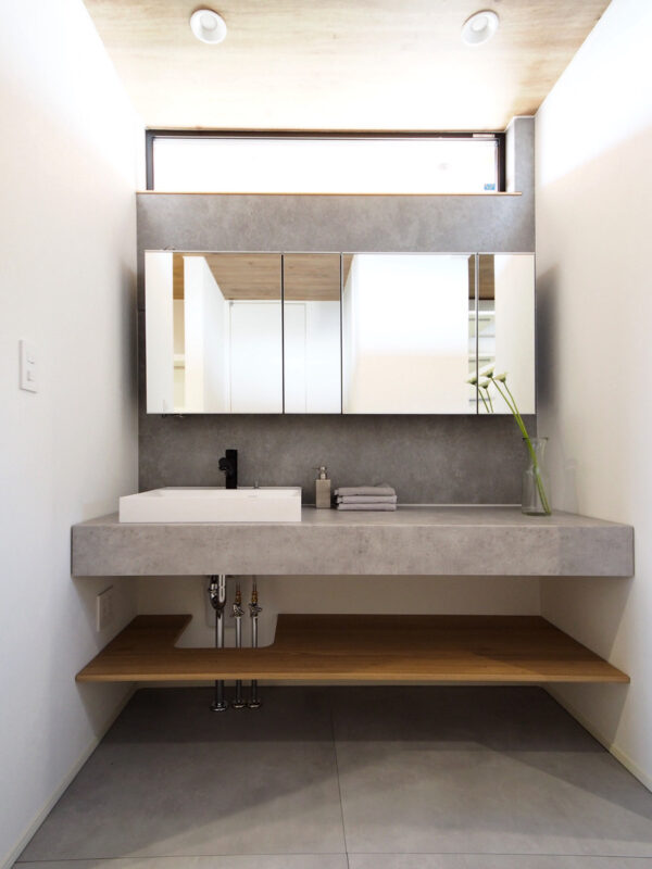 グレーのカウンターを使った洗面は、
