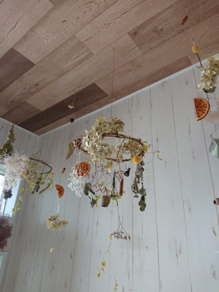 どちらのお家にもドライフラワ―を使ったスワッグ等が