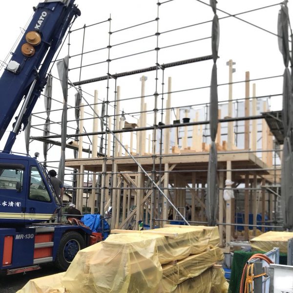 お施主様も実際の棟上げでおうちの大きさにビックリされていました!