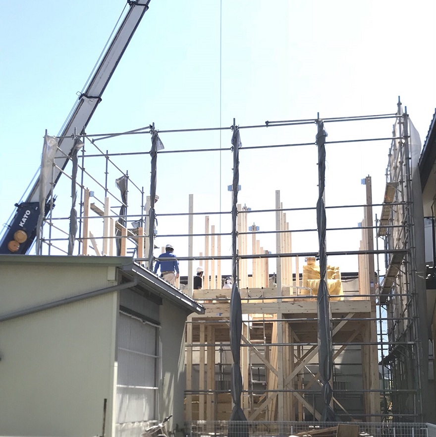お施主様も実際の棟上げでおうちの大きさにビックリされていました!