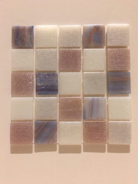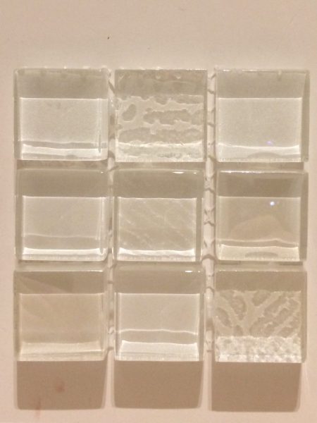 こちらは、幾何学模様をガラスに転写したモザイクタイル。