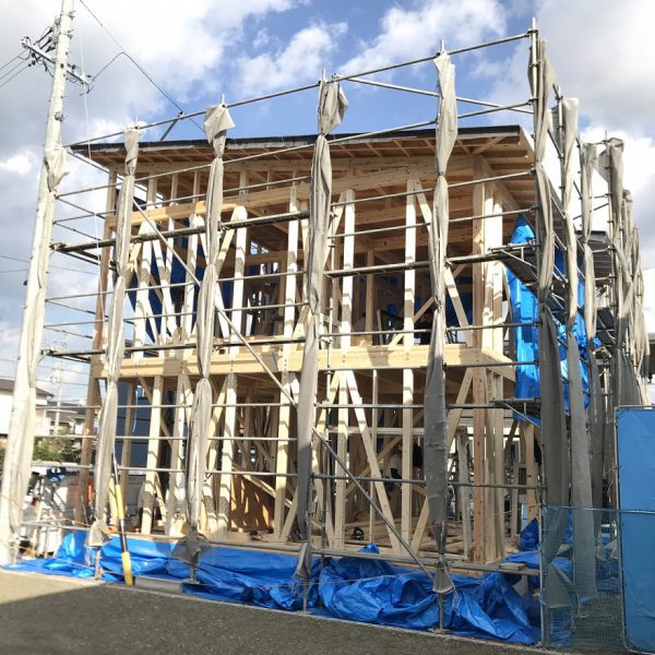 子育て世代のパパ・ママが建てた等身大30坪のお家。現在建築中のお家でも建物の大きさが体感できます。