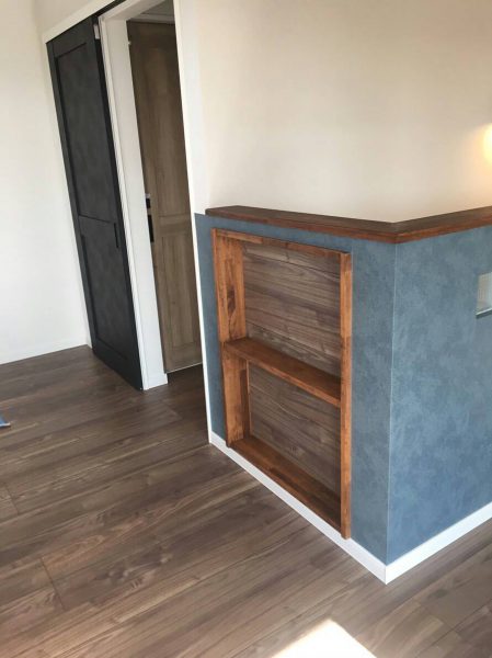 以前ブログでご紹介した現場が、完成しました。前回の時はまだクロスもはれていない状態でしたがクロス、クリーニングまで完了しました。完成写真です↓ 腰壁部分にアクセントクロスを使用しています。見せる本棚として有効ですね。 沼津支店 工務 加藤龍之介