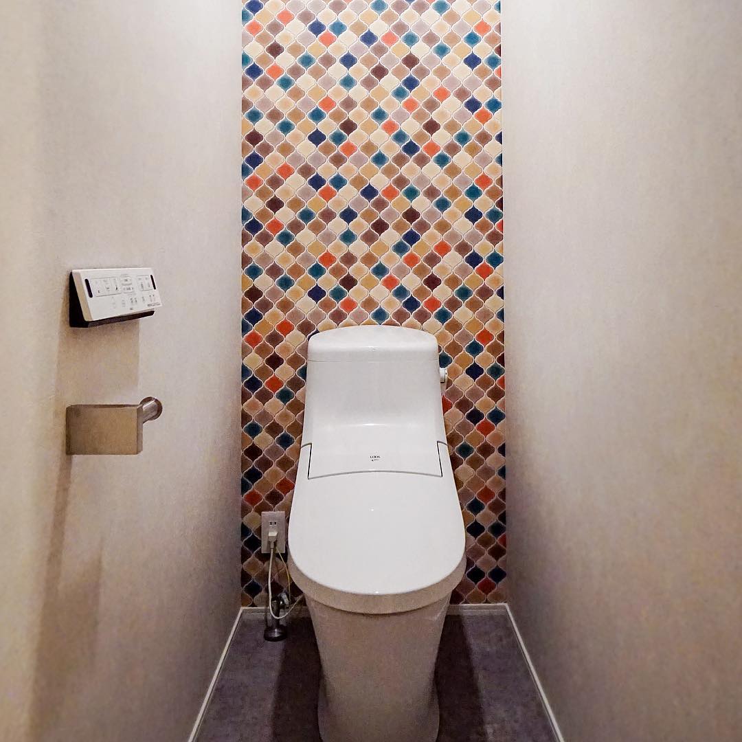 コラベル柄がとっても可愛いおしゃれトイレです! 一面だけでも柄があるだけでとってもおしゃれなトイレに大変身です。