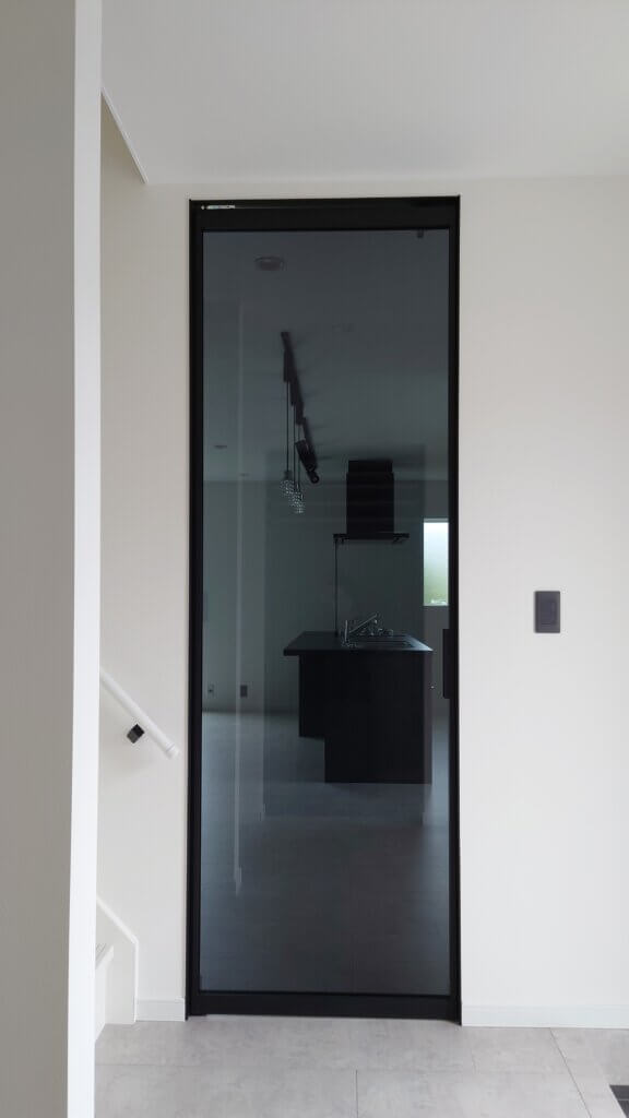 ドア枠のブラックにグレーのガラスがカッコいい!