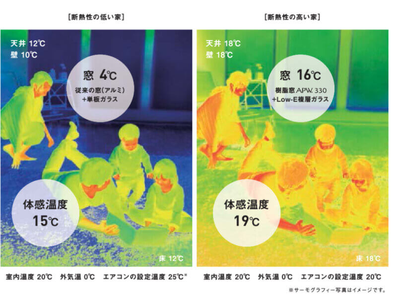 断熱性が高い家だと、体感温度も高くなり、快適に過ごせます。
