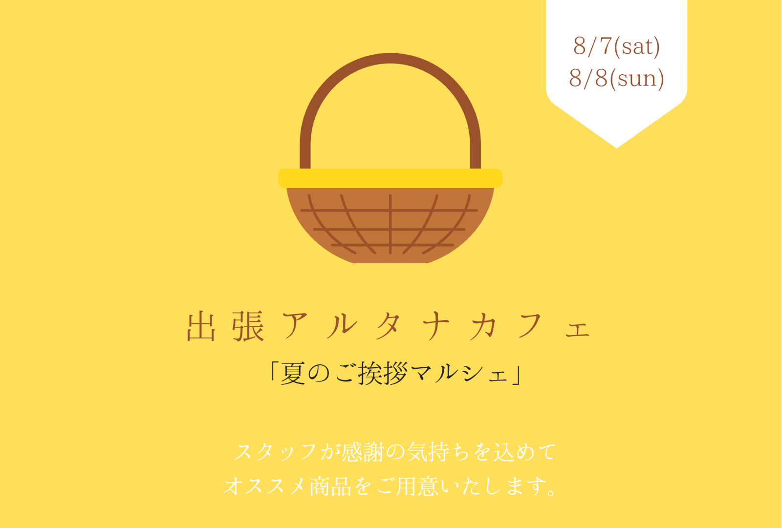 8/7(土)8/8(日)夏祭りの出張マルシェ!!