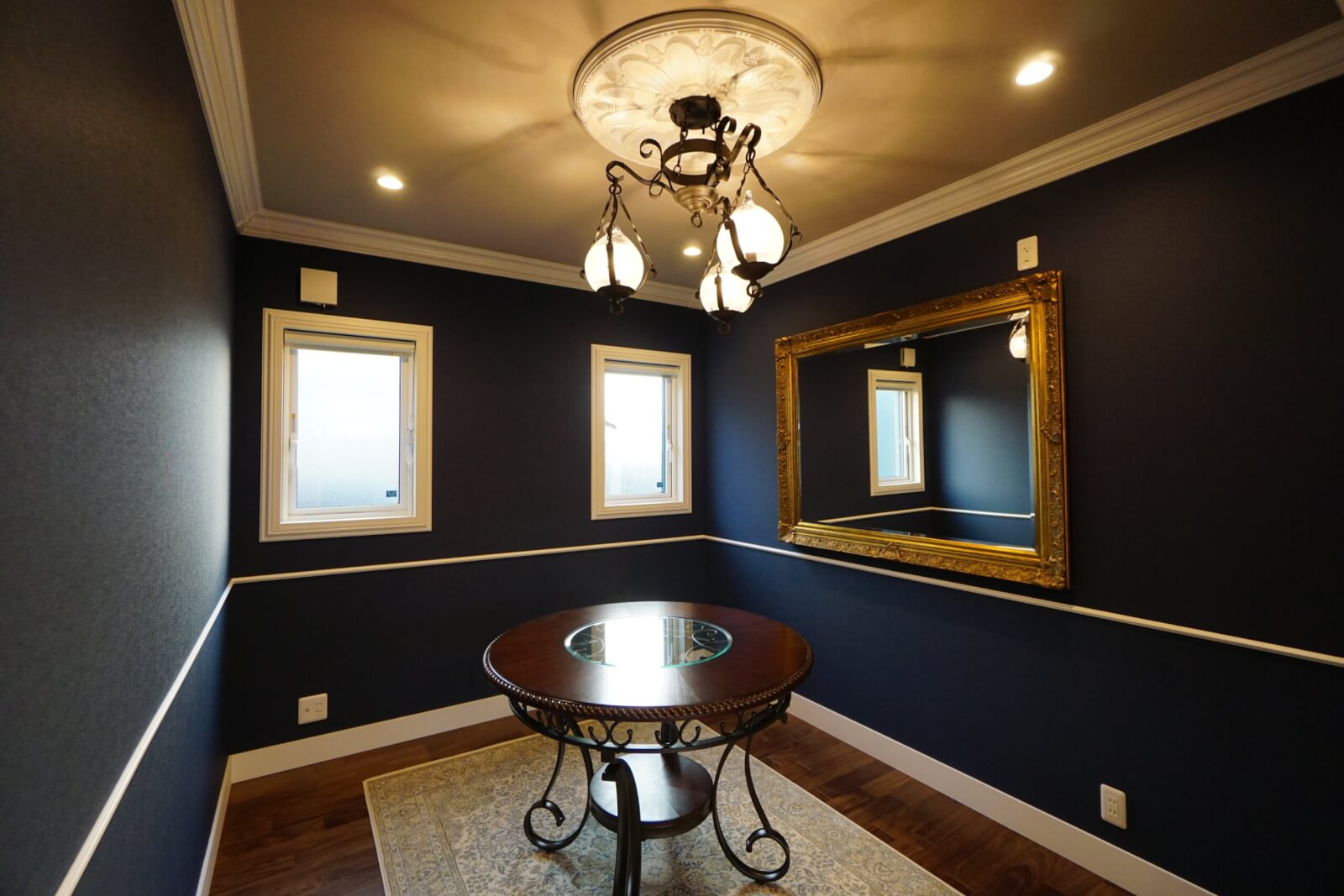 ネイビーのクロスが落ち着いた空間にしていますね😊