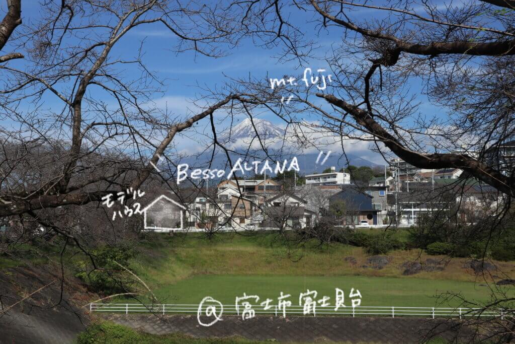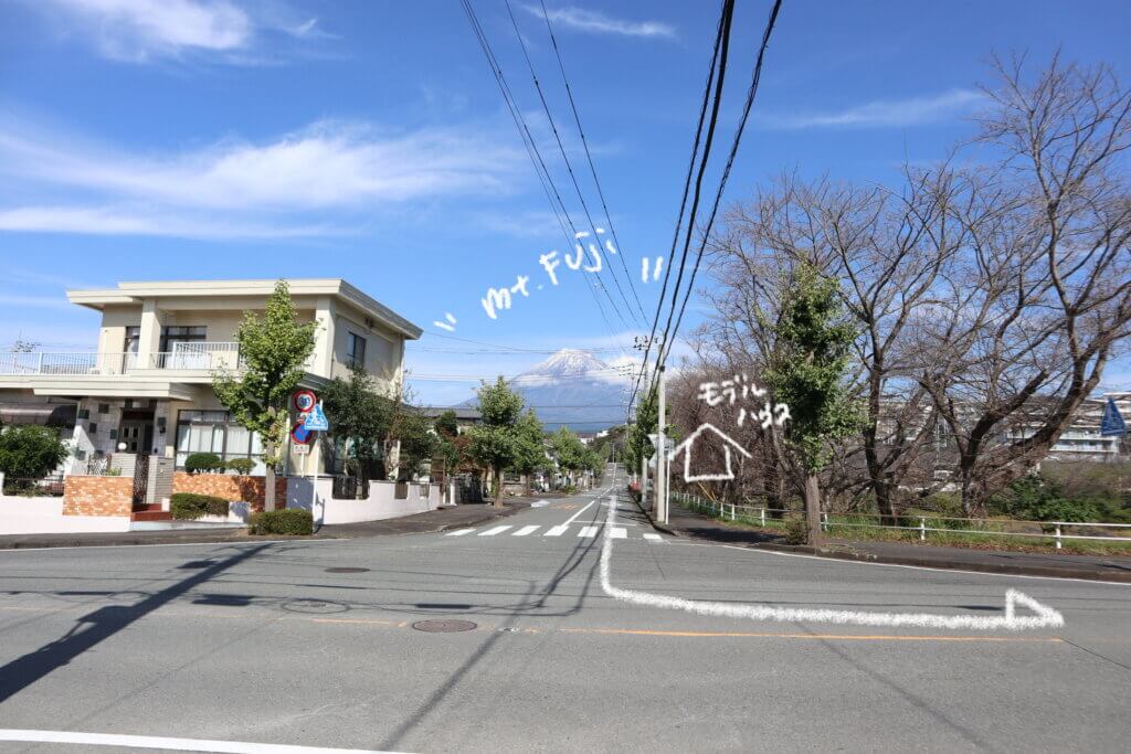 モデルハウス南側の並木道を沼津方面へ車を走らせると、道は緩やかな下り坂へ。