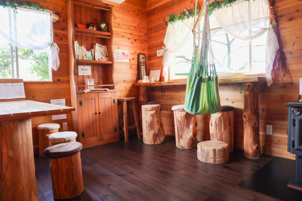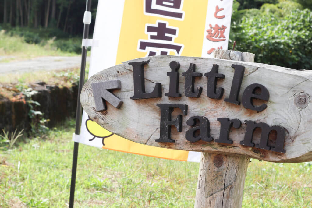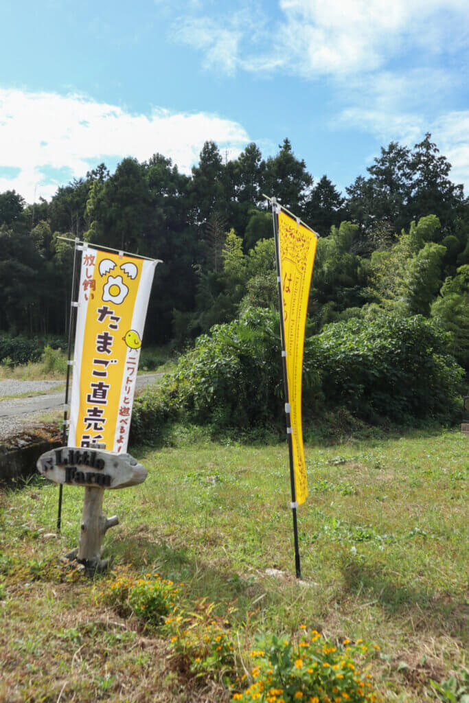 「はちみつ」「たまご」の文字と木の看板がお出迎えする、こちらが『リトルファーム』さんです。