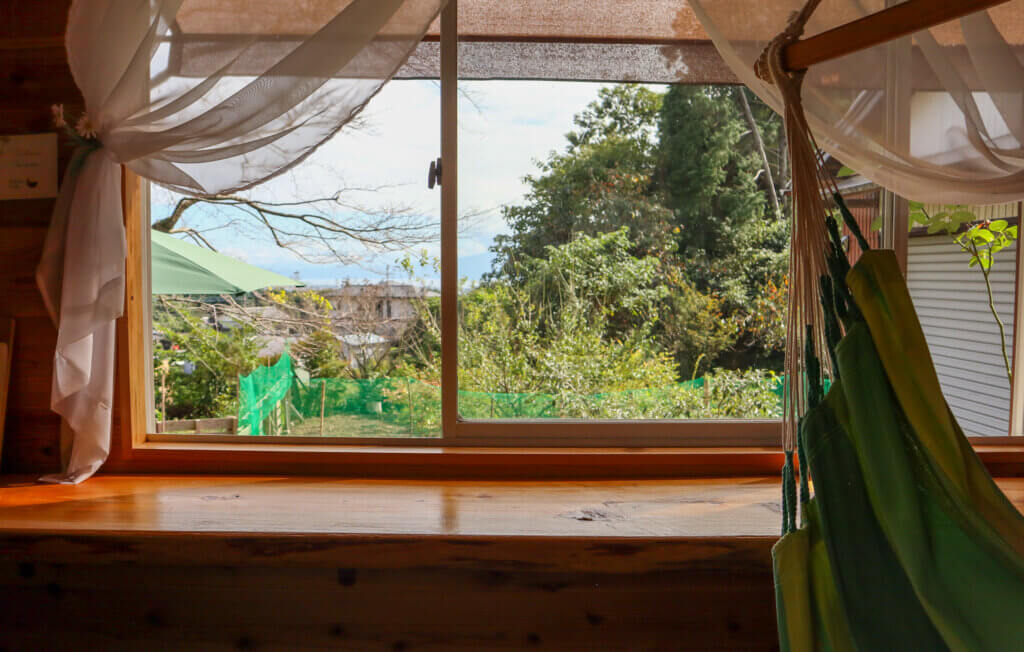 窓の外には緑が広がり、伊豆半島や駿河湾も見えます。風が気持ちよい午後でした。