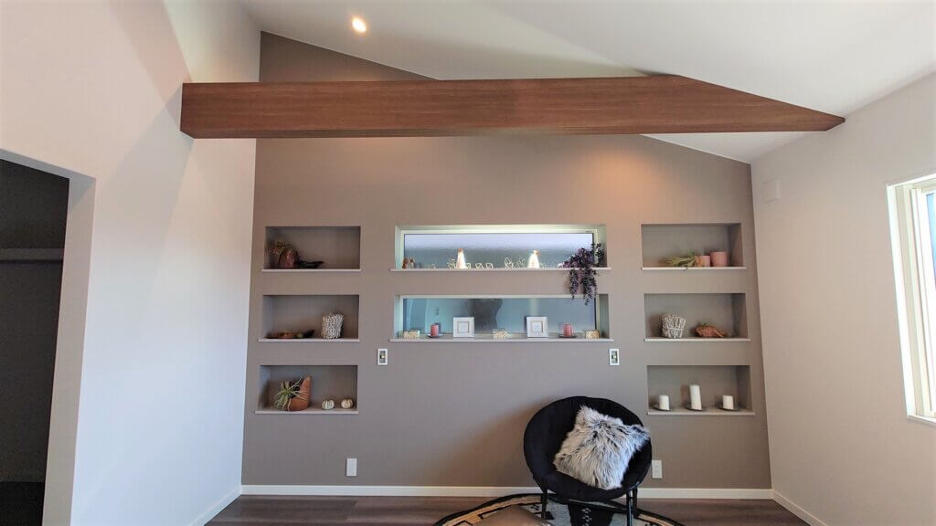 窓を挟むように壁を利用したニッチ