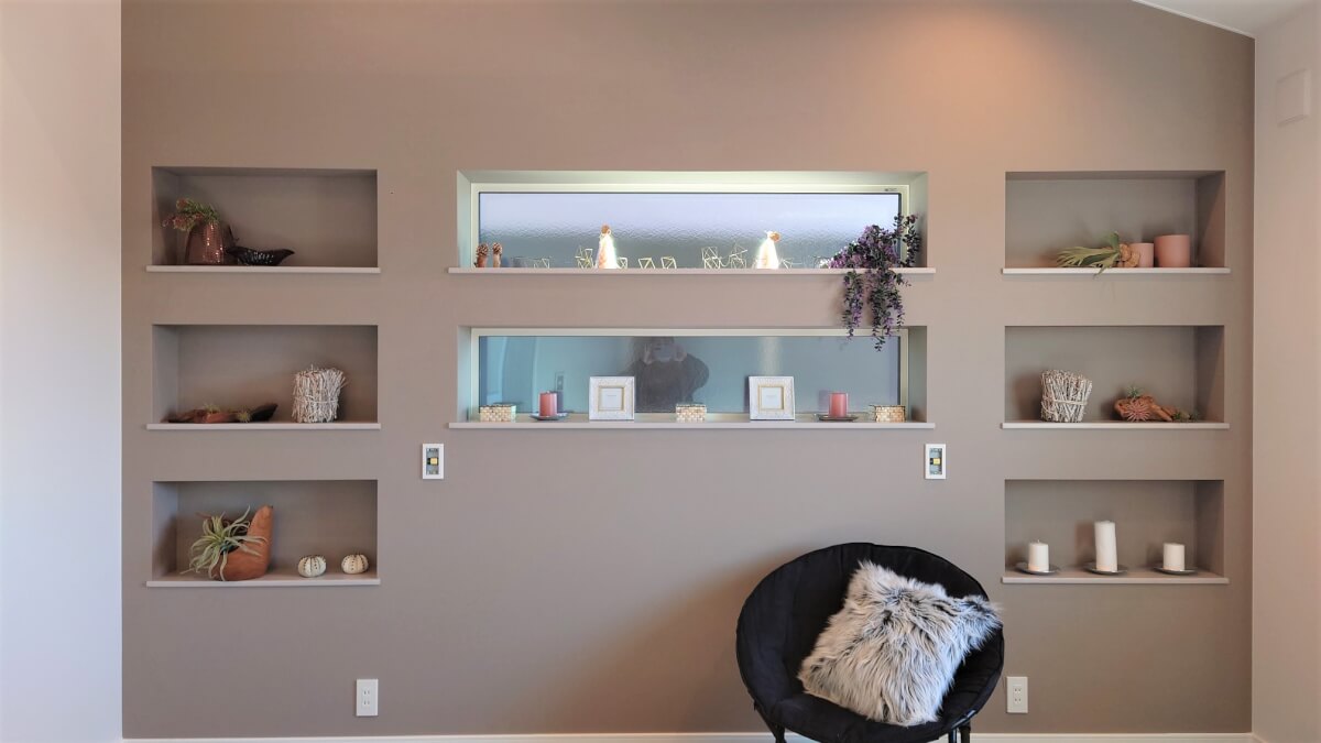 窓を挟むように壁を利用したニッチ