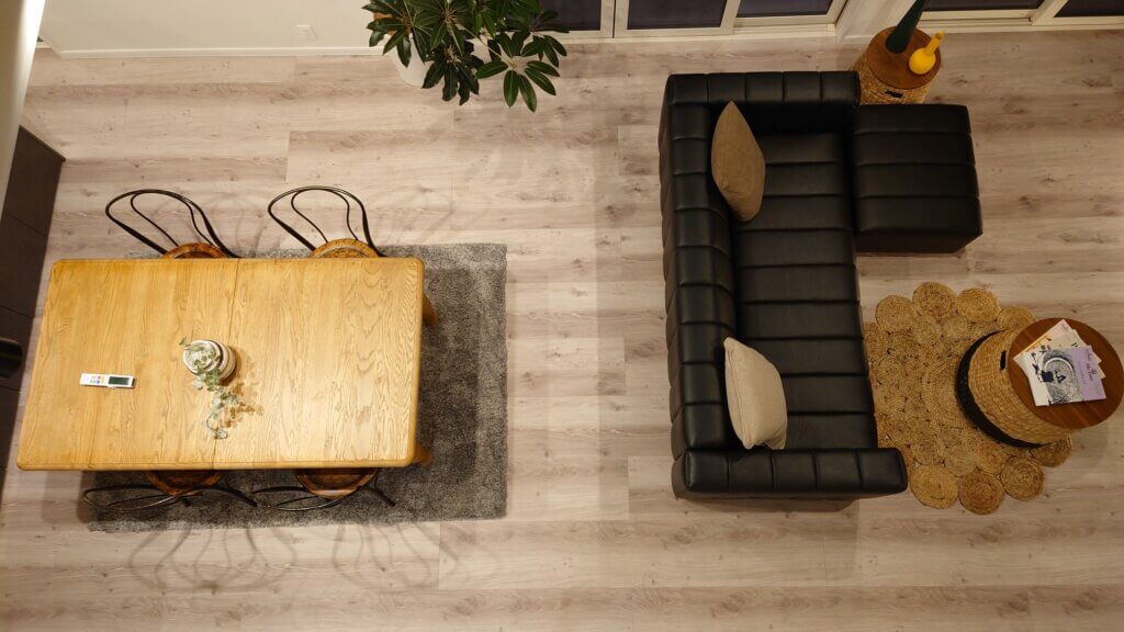 ちょうどきれいにダイニングテーブルとソファが見えます