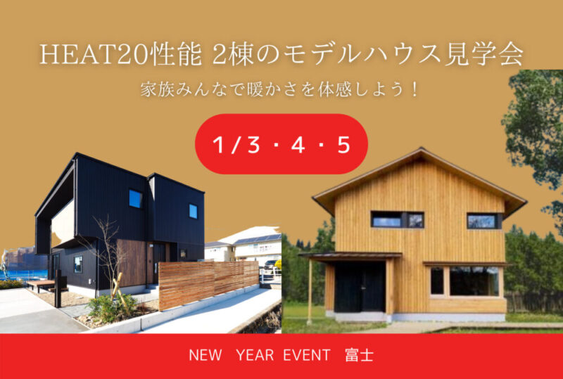2022年1/3(月)〜1/5(水)富士市『HEAT20性能 2棟のモデルハウス見学会』家族みんなで暖かさを体感しよう!>>