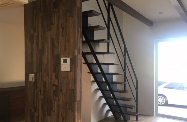 スケルトン階段とアイアン手すりがリビングにそびえ立つさま、ぜひご覧ください!!