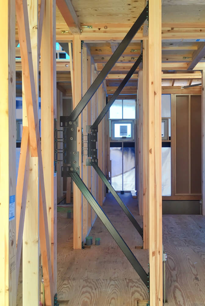 今週末の現場見学会で電話番号ご覧いただける「制振装置KブレースⅡ」は地震にも強く、台風でも家が揺れません!