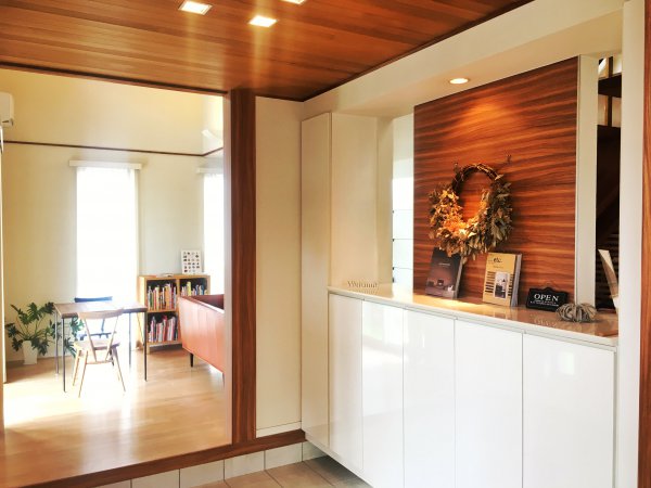 ↓こちらがモデルハウスの玄関土間からリビングを見たところです。