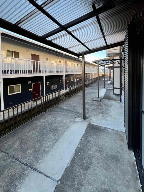 掃き出し側は大きめのテラス屋根がついて便利です。