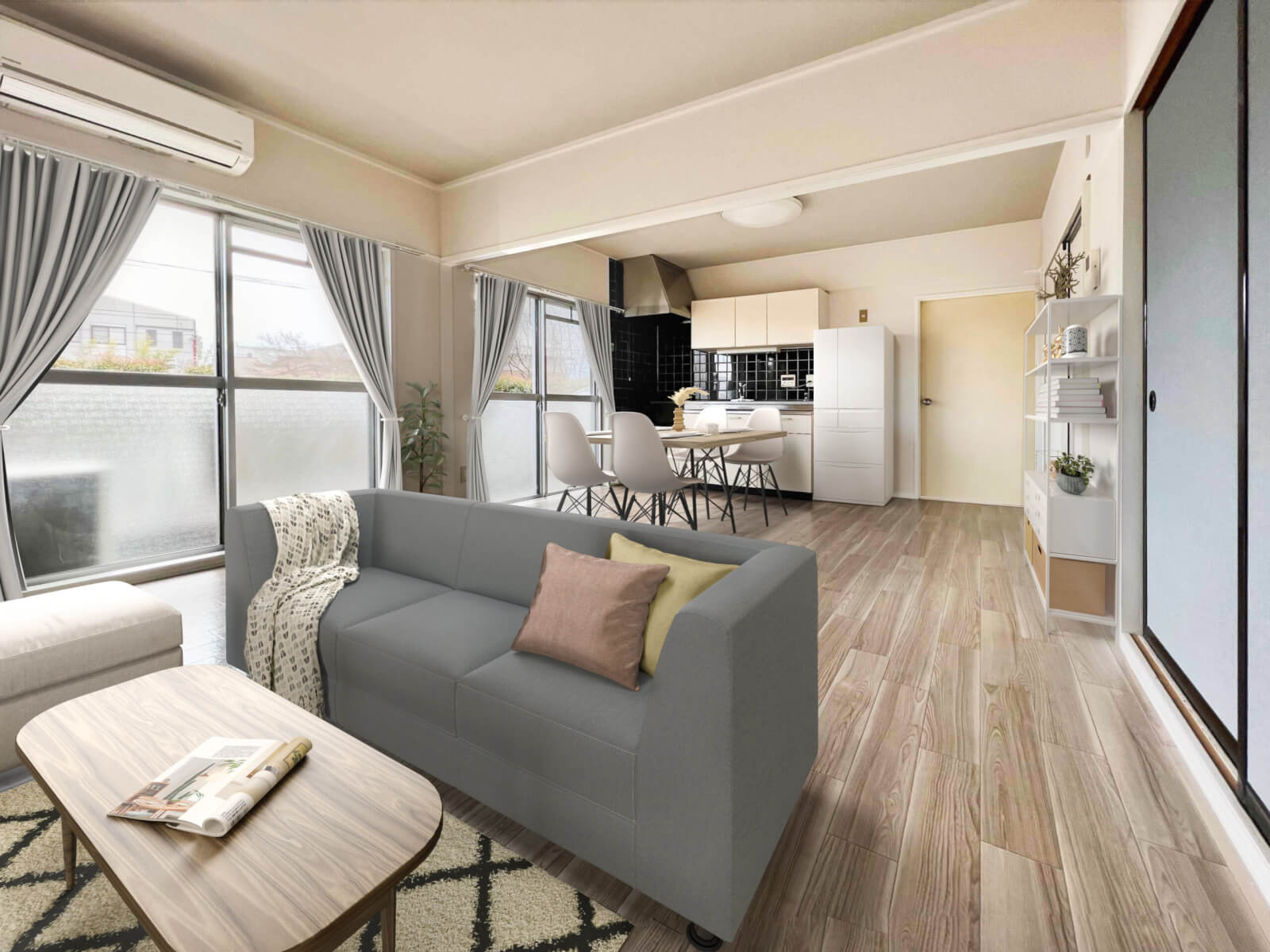 前面棟がなく、日当たり、痛風のいいリビング、居室