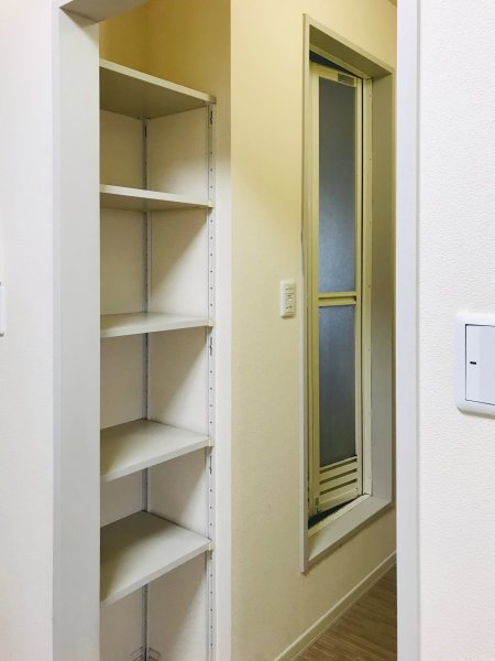 ②洗面所に稼働棚・・・・・・下着やタオル、備品の収納に便利