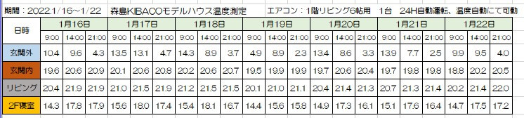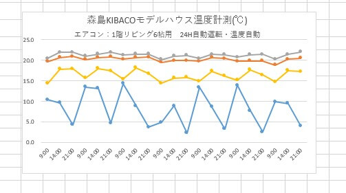 1階のリビングは20℃下回らず20~21℃くらいで安定しています。